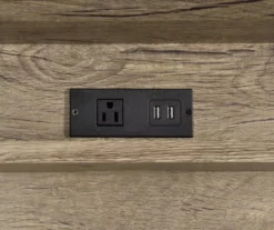 Modern rustic styling for today’s offices or homes, the Corday desk combines a gray wood look with black metal accents in a desk that adds storage and style to any room. An enclosed back panel offers hidden storage for all your messy computer peripherals while easy-open access and dual USB ports and an electrical outlet offer easy charging for devices. The style and utility of the Corday desk provides a compact footprint that will fit well in an apartment or large home.